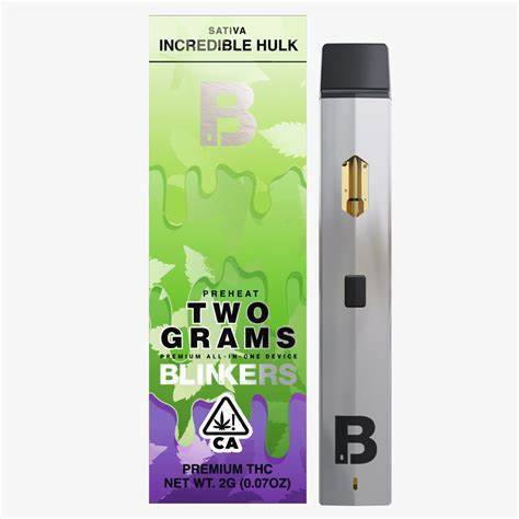 The Incredible Hulk Blinker 2G Disposable Vape is a premium, sativa-dominant hybrid strain crafted from a cross between the iconic Jack Herer and Green Crack strains. Renowned for its potent effects, this vape boasts a high THC content of up to 26%, delivering a powerful and long-lasting experience. Users can expect an energetic onset that sparks a lifted sense of focus, creativity, and pure happiness, followed by a wave of tingly relaxation that may eventually lead to a cozy, couch-locked state perfect for unwinding after a busy day.